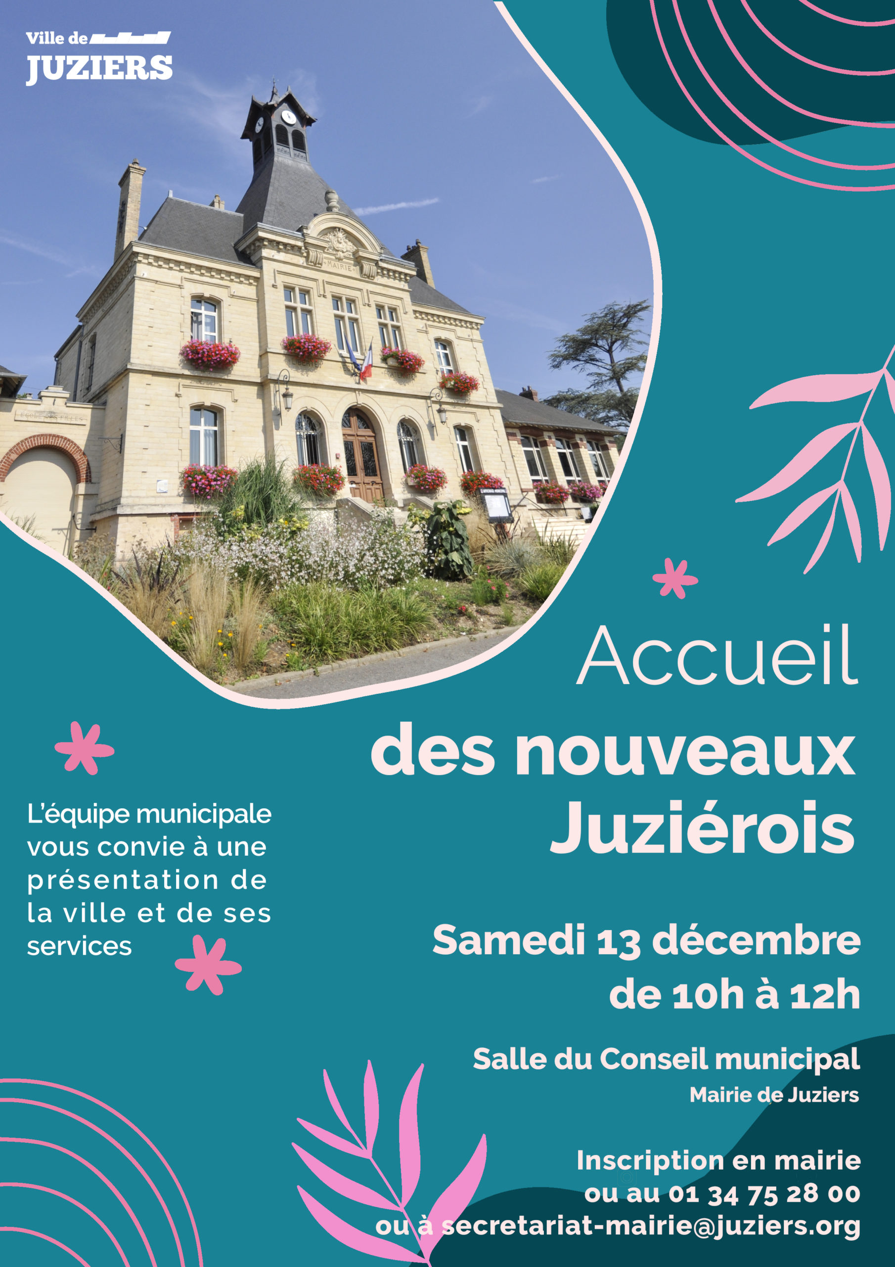 Accueil > Agenda > Accueil des nouveaux Juziérois Accueil des nouveaux Juziérois samedi 13 décembre 10:00 - 12:00 Visuel Affiche Infos & réservations Mairie salle du Conseil municipal place du général de Gaulle 78820 JUZIERS
